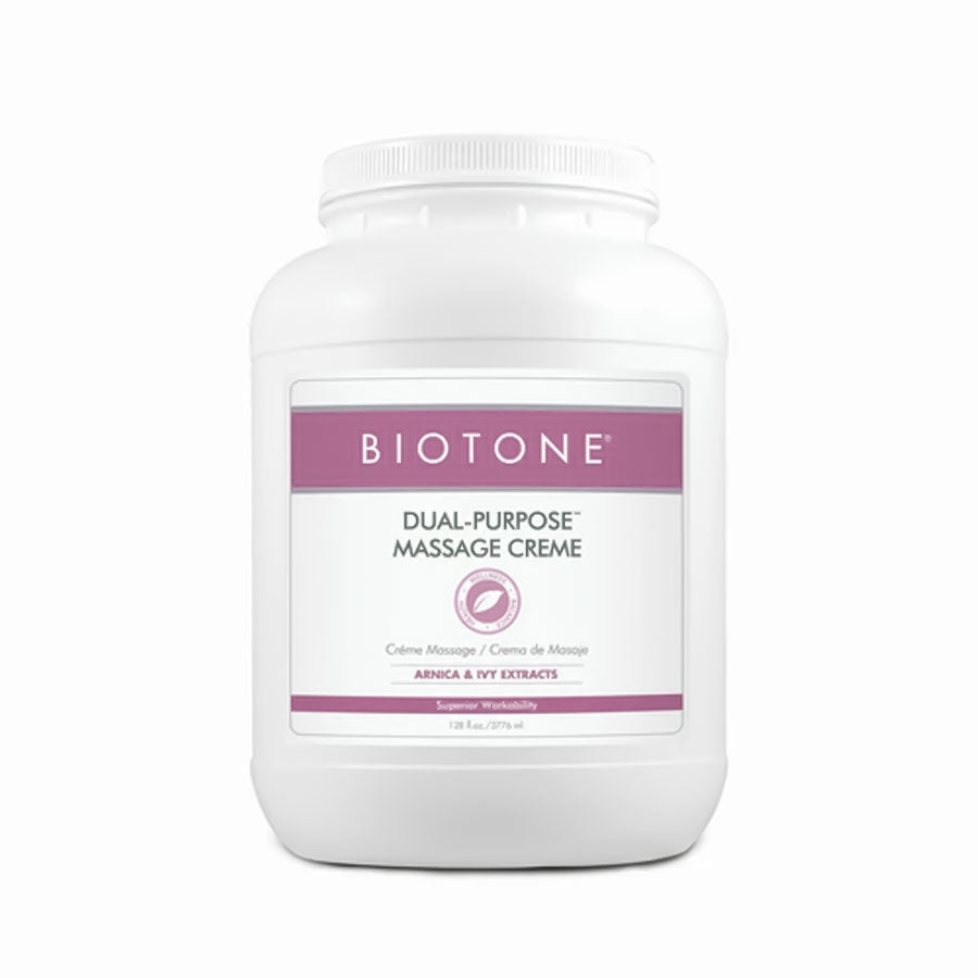 BIOTONE® Dual-purpose Massage Creme, therapists' trusted choice for over 30 years, provides a superior combination of an oil's workability and a lotion's absorbency. Arnica and Ivy Extract's botanical qualities are the first choice for relief and provide added skin health and wellness benefits.