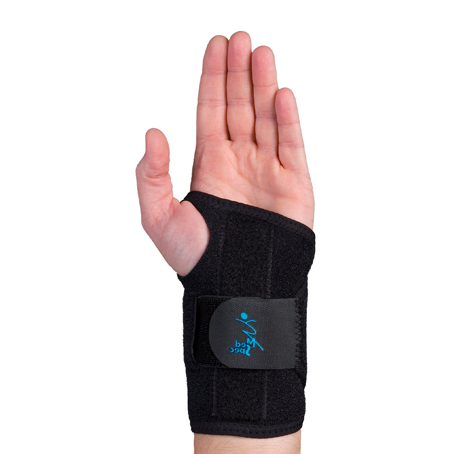 El material CoolFlex™ y la correa de compresión brindan un soporte cómodo para los pacientes que usan la muñequera Med Spec Viper. El sistema de retención de la correa en el extremo de la correa de compresión permite una fácil aplicación. El soporte palmar de aluminio resiste la flexión de la muñeca, pero no hay soporte dorsal que resista la extensión. El diseño universal de la férula para muñeca se adapta a una amplia variedad de tamaños de pacientes.