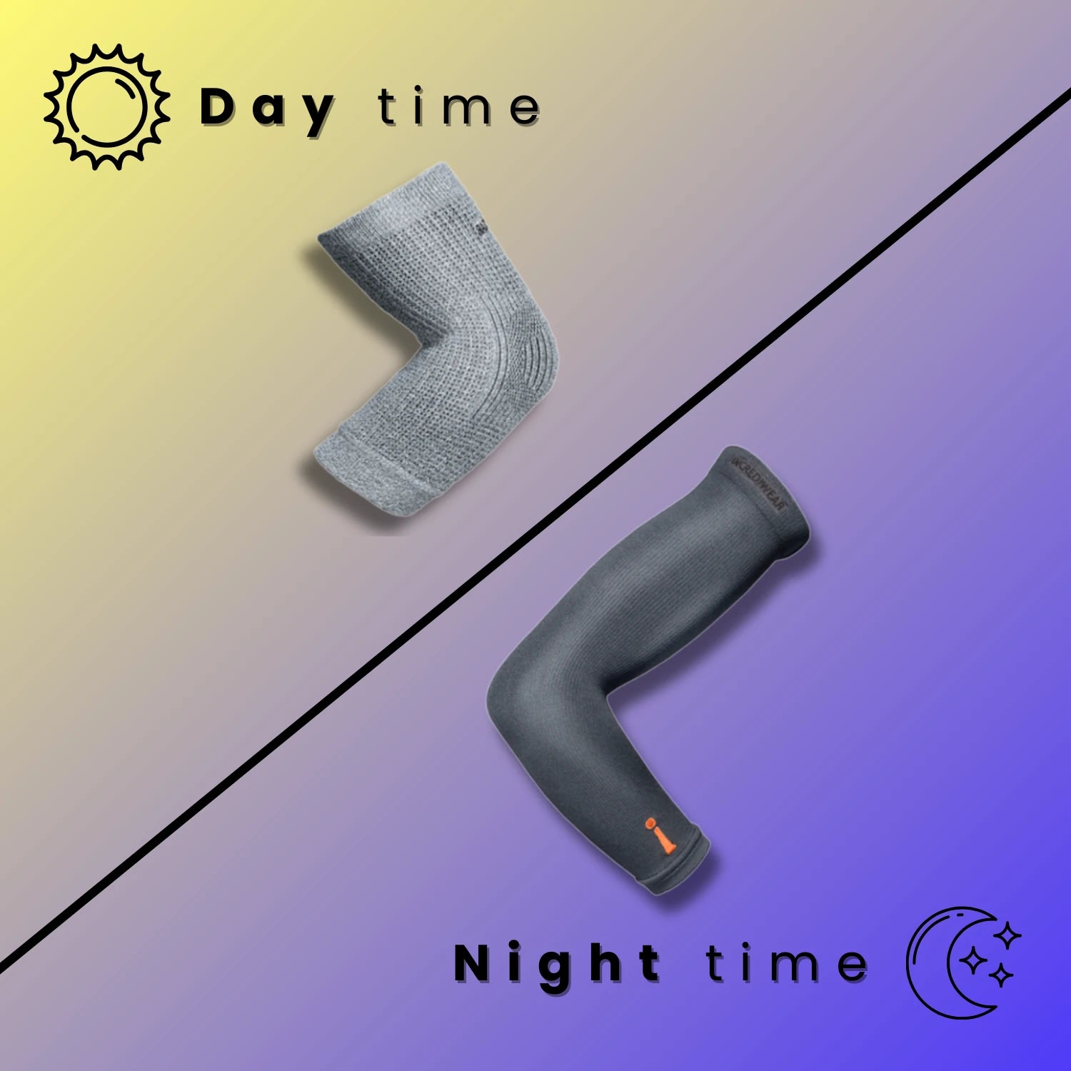 The Incrediwear Day & Night Bundle pairs the Elbow Sleeve and Arm Sleeve to provide around-the-clock relief and recovery. Designed for those with acute or chronic elbow conditions, these sleeves increase circulation, reduce pain, and support healing — whether you’re active during the day or resting at night.